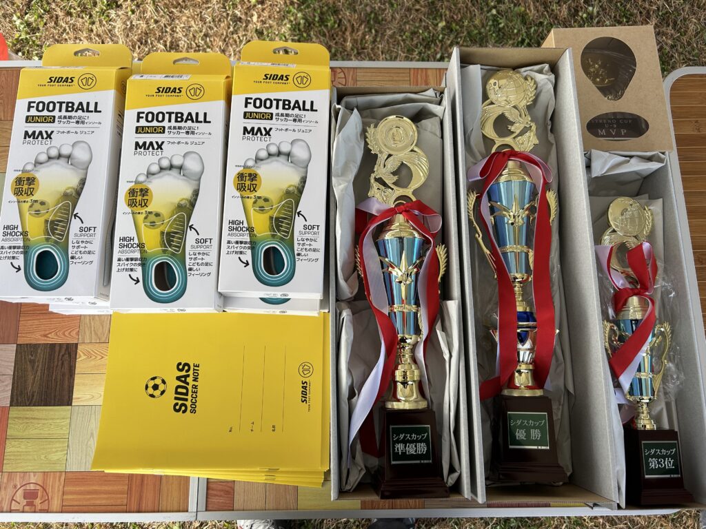 今回の大会では、シダス様からご提供いただいた景品が大会全体の質を高め、参加チームの方々から「素晴らしい大会だった」と多くの声をいただきました。ジュニア年代はオーバーワークによる怪我が増えていることもあり、インソールの存在は選手のコンディションを守る上で大きな意味を持っています。大会を通じてその重要性が改めて認識されたと感じています。 選手たちは大きなトロフィーやインソールを目指し、どのチームも全力でプレーしていました。サッカーノートについても、「これを機に書き始めたい」と話す保護者やスタッフの声が聞かれ、取り組みの幅を広げるきっかけにもなったようです。 インソールを受け取った選手が翌日の練習で早速使用し、「これすごくいい!」と仲間に紹介する様子も見られました。すでに使用していた選手の中には、かかとやアキレス腱の痛みが改善したと保護者が話す例もあり、実際の効果を実感している選手が多いことが伺えます。 今回の大会は、選手たちの意識向上と怪我予防の啓発にもつながり、サッカーを続けるうえで大切な気づきを与える機会となりました。