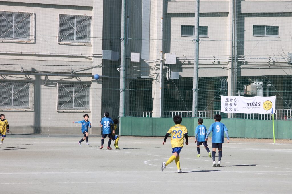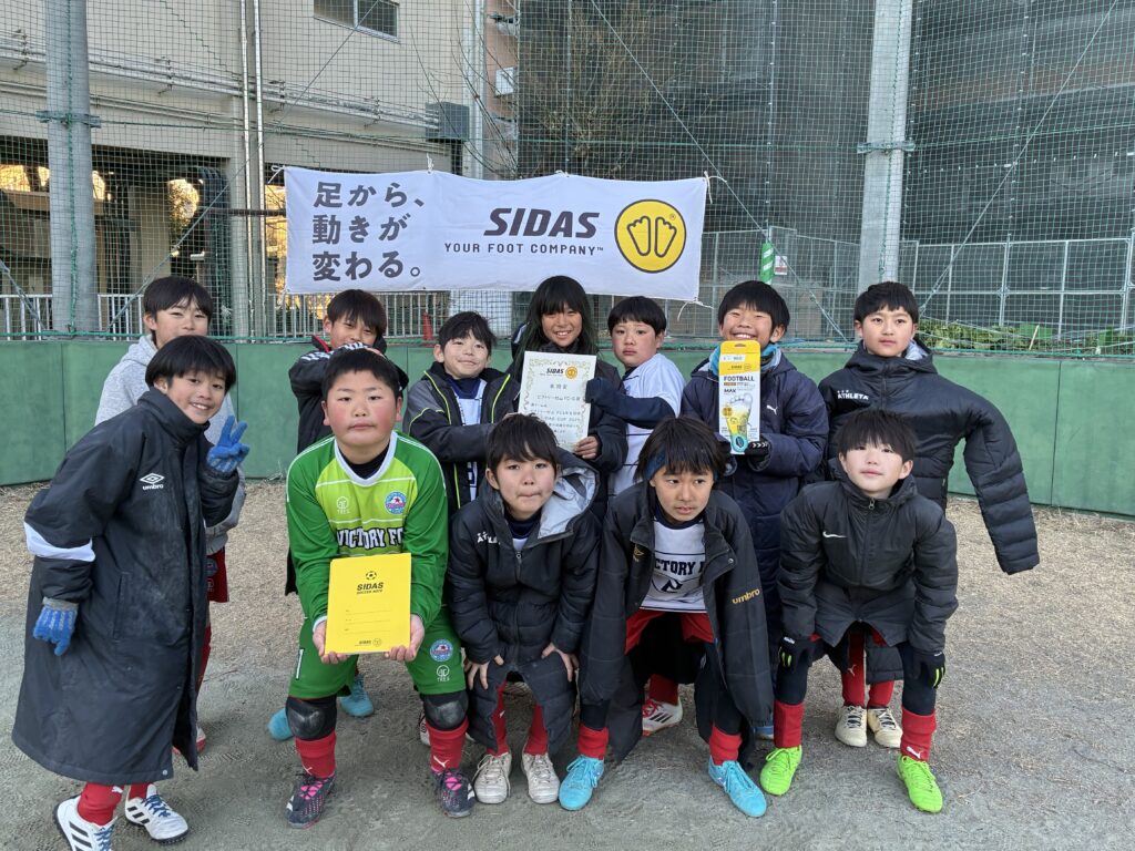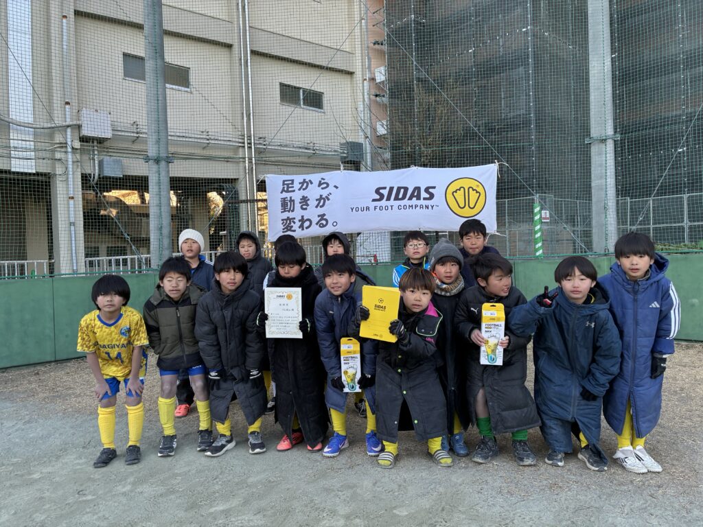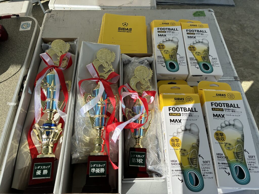 インソールメーカーであるシダスジャパン株式会社様のご提供により、4年生招待大会「SIDAS CUP 2025」を開催しました。当初は12月開催を予定していましたが雨天により延期となり、改めて実施した当日は冬晴れに恵まれました。時折、冷たい風が強く吹く場面もありましたが、選手たちは元気いっぱいにピッチを駆け回り、試合は終始熱量の高い展開となりました。 会場には横断幕を掲示し、表彰式ではシダス様の取り組みを紹介する時間も設けたことで、選手や保護者の方々にその存在や意義を知っていただく良い機会になりました。実際に「このインソール使っているよ!」と声をかけてくれる選手も複数おり、足元への意識が自信につながっているような、堂々としたプレーが印象的でした。 参加賞として配布したシダスオリジナルのサッカーノートには「足の状態」「シューズの状態」を記録する欄があり、日々のコンディションを選手自身が自然に振り返るきっかけになる仕組みだと感じました。表彰は優勝トロフィーに加え、個人賞として「対戦チーム推薦の優秀選手賞」「得点王」「プスカシュ賞(大会ベストゴール)」を設定し、さらにインソールのご提供もあったことで、選手たちの集中力や勝負への姿勢が一段と高まっていたように見受けられます。 子どもたちの健やかな成長を足元から支える取り組みとして、こうした価値ある支援が今後も継続していくことを期待しています。