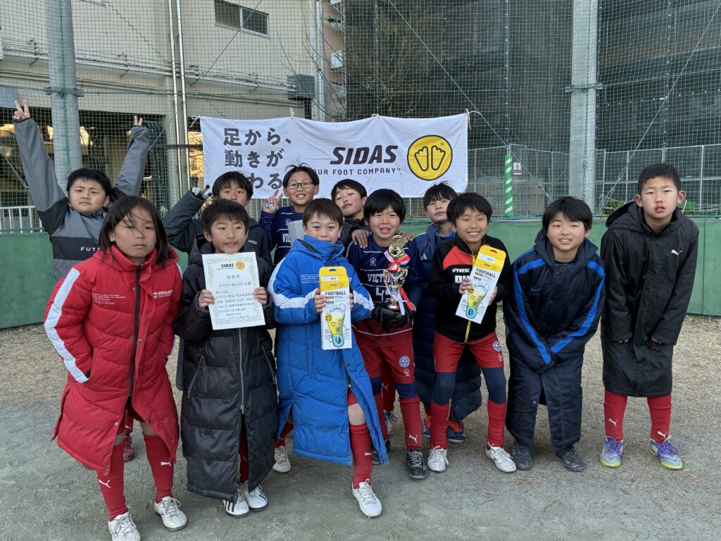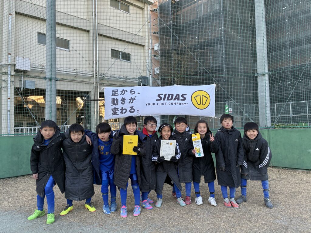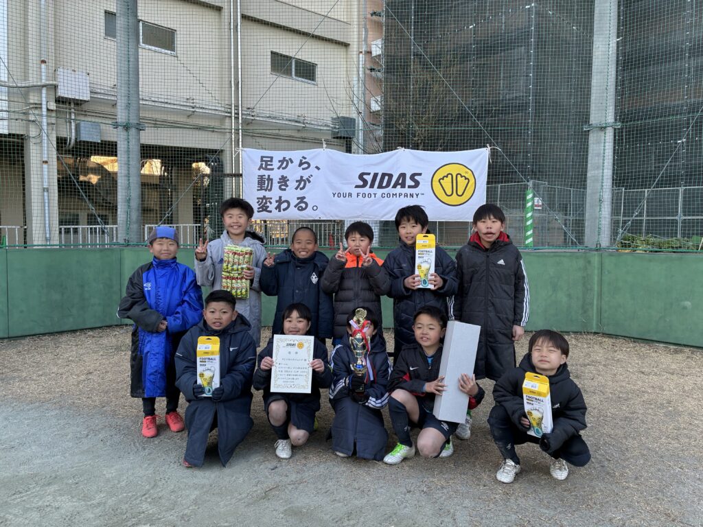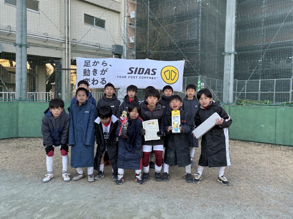 インソールメーカーであるシダスジャパン株式会社様のご提供により、4年生招待大会「SIDAS CUP 2025」を開催しました。当初は12月開催を予定していましたが雨天により延期となり、改めて実施した当日は冬晴れに恵まれました。時折、冷たい風が強く吹く場面もありましたが、選手たちは元気いっぱいにピッチを駆け回り、試合は終始熱量の高い展開となりました。 会場には横断幕を掲示し、表彰式ではシダス様の取り組みを紹介する時間も設けたことで、選手や保護者の方々にその存在や意義を知っていただく良い機会になりました。実際に「このインソール使っているよ!」と声をかけてくれる選手も複数おり、足元への意識が自信につながっているような、堂々としたプレーが印象的でした。 参加賞として配布したシダスオリジナルのサッカーノートには「足の状態」「シューズの状態」を記録する欄があり、日々のコンディションを選手自身が自然に振り返るきっかけになる仕組みだと感じました。表彰は優勝トロフィーに加え、個人賞として「対戦チーム推薦の優秀選手賞」「得点王」「プスカシュ賞(大会ベストゴール)」を設定し、さらにインソールのご提供もあったことで、選手たちの集中力や勝負への姿勢が一段と高まっていたように見受けられます。 子どもたちの健やかな成長を足元から支える取り組みとして、こうした価値ある支援が今後も継続していくことを期待しています。