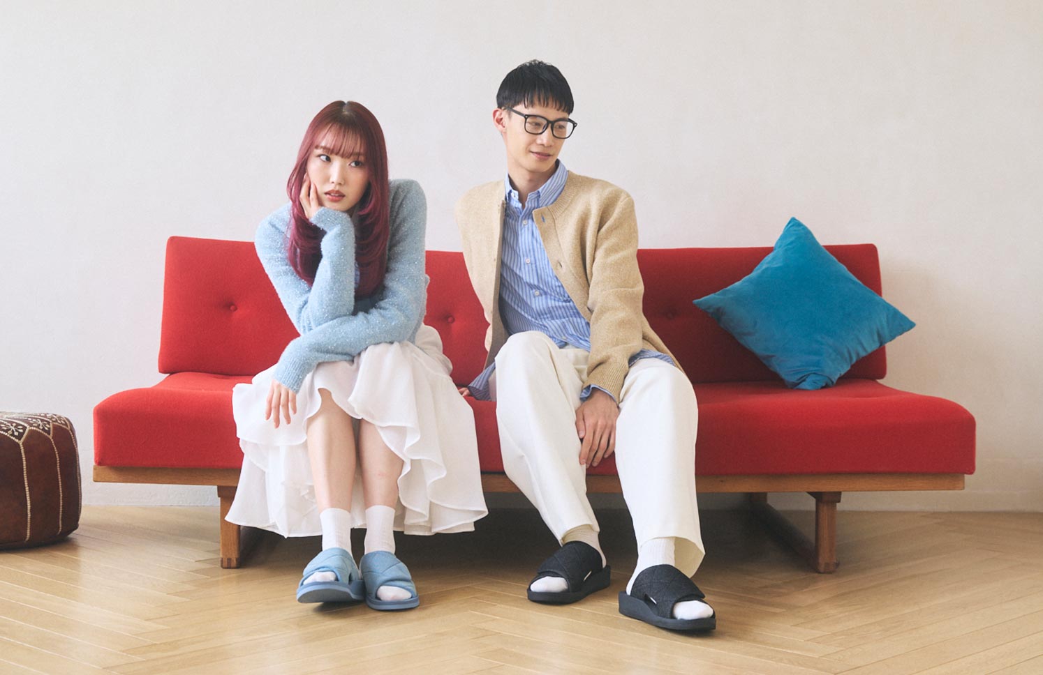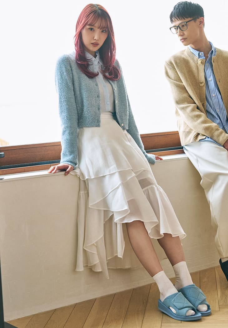 トレンドのデニム素材「ブラック」「サックスブルー」は、コーディネートの一部として日々のファッションやライフスタイルの中に自然に取り入れられるアイテム。立体的なステッチが日常の足元にアクセントを。