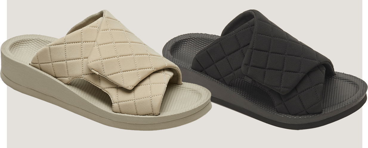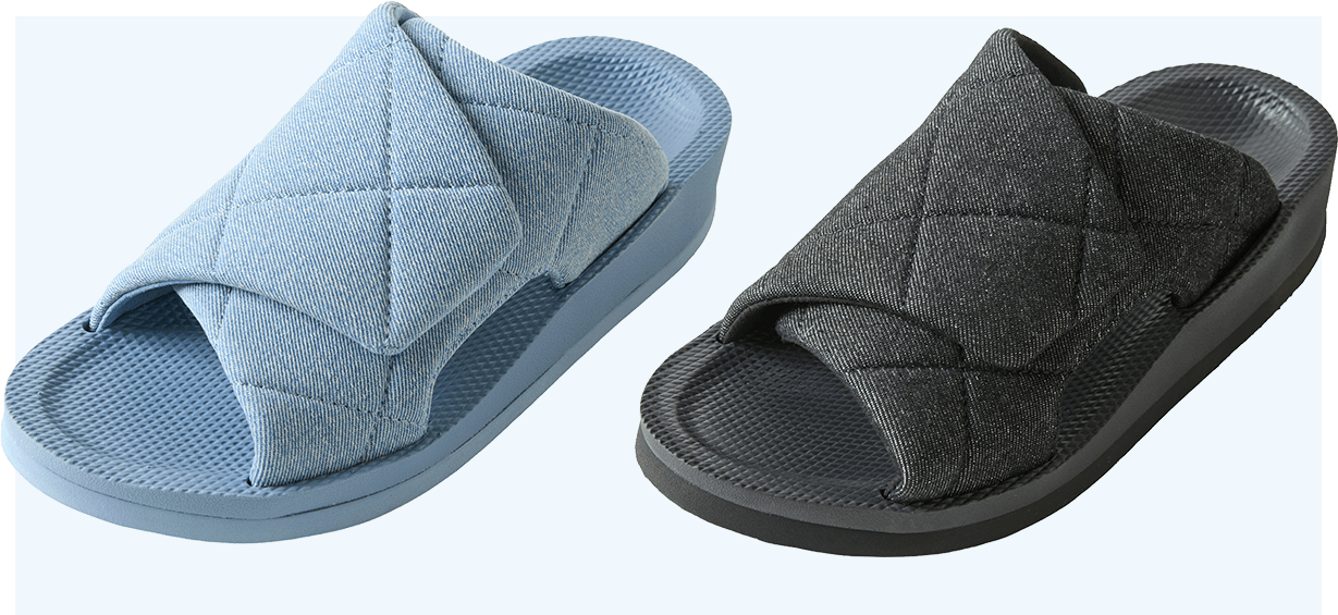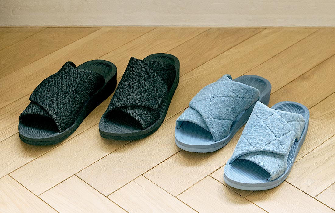 定番のキルティング素材の「ブラック」「トープ」は、足に沿いやすいソフトな生地でありながら、ステッチが入っていることで形が崩れにくく、来客用に揃えておくのにもぴったりです。